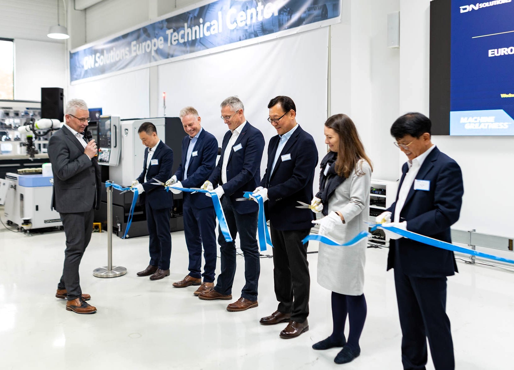 迪恩機(jī)床Wonjong Kim社長(zhǎng)、Kyuho Bae副社長(zhǎng)、Dongbeom Lee常務(wù)、歐洲首席執(zhí)行官(CEO)Hyuk Kim以及德國(guó)西門子公司MTS部門首席執(zhí)行官(CEO)Stefanie Frank、日本發(fā)那科(FANUC)歐洲法人首席執(zhí)行官(CEO)Marco Ghirardello等出席了當(dāng)天的活動(dòng),共同祝賀歐洲技術(shù)中心盛大開(kāi)業(yè)。